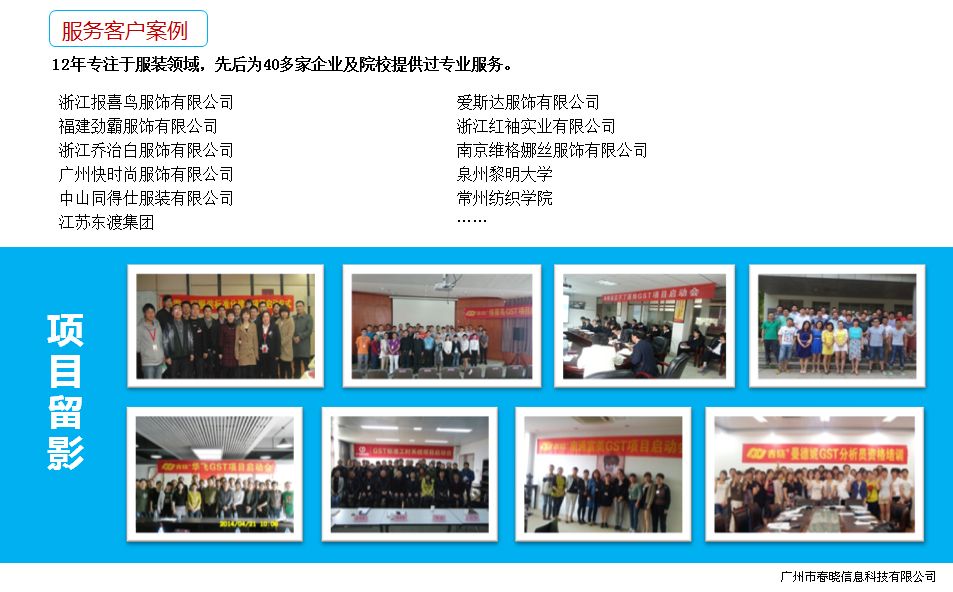 报价体系的建立分为两部分,一部分是对客户报价,另外一部分是供应商报价。在打价格战的今天,如何以低的价格来快速抢单,同时又能保障企业利润。通常情况下,贸易公司会对成本进行严格的管控。而一件衣服的成本在面辅料价格固定后,剩下多的是加工成本了。如何在 时间确定加工成本呢?以往采取的是经验评估或者秒表测时,此两种方法会导致数据差异大,且数据滞后的现象,无法满足快速报价的需求,越来越多的企业选择采用预定动作分析法来进行加工成本的确定,即用GST系统来提前完成实现快速报价,且保障数据的准确度。而在对供应商发单这块,普通的现象就是通过多次的面对面谈判来达成一致,或者通过不断的寻找合适的供应商来实现价格的一致,如此循环,交易成本太高只有建立 共享的或者共同认同的数据管理平台,争议就会减少,大大缩减沟通的人力及时间成本。搭建 诚信、合作、共赢的良性供应链体系。